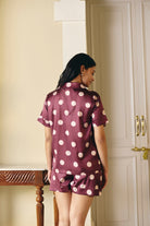 Lounge in luxury with our elegant satin shorts set, featuring a timeless print, a relaxed-fit shirt with a chest pocket, and matching shorts. The intricate piping details on both the shirt and shorts add a sophisticated touch to the chic and comfortable two-piece. Perfect for a restful night or a cozy day in, this set combines effortless style with supreme comfort.