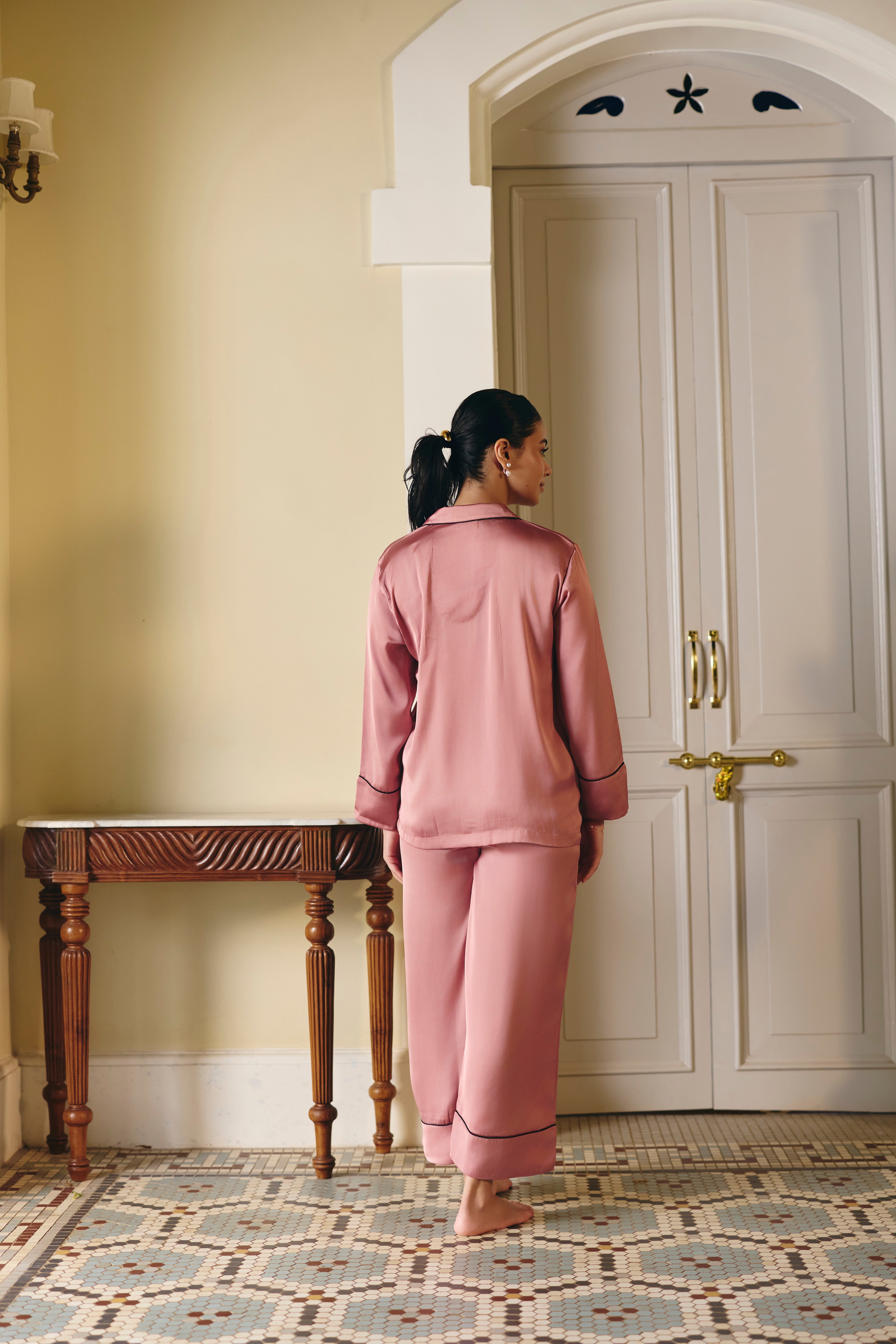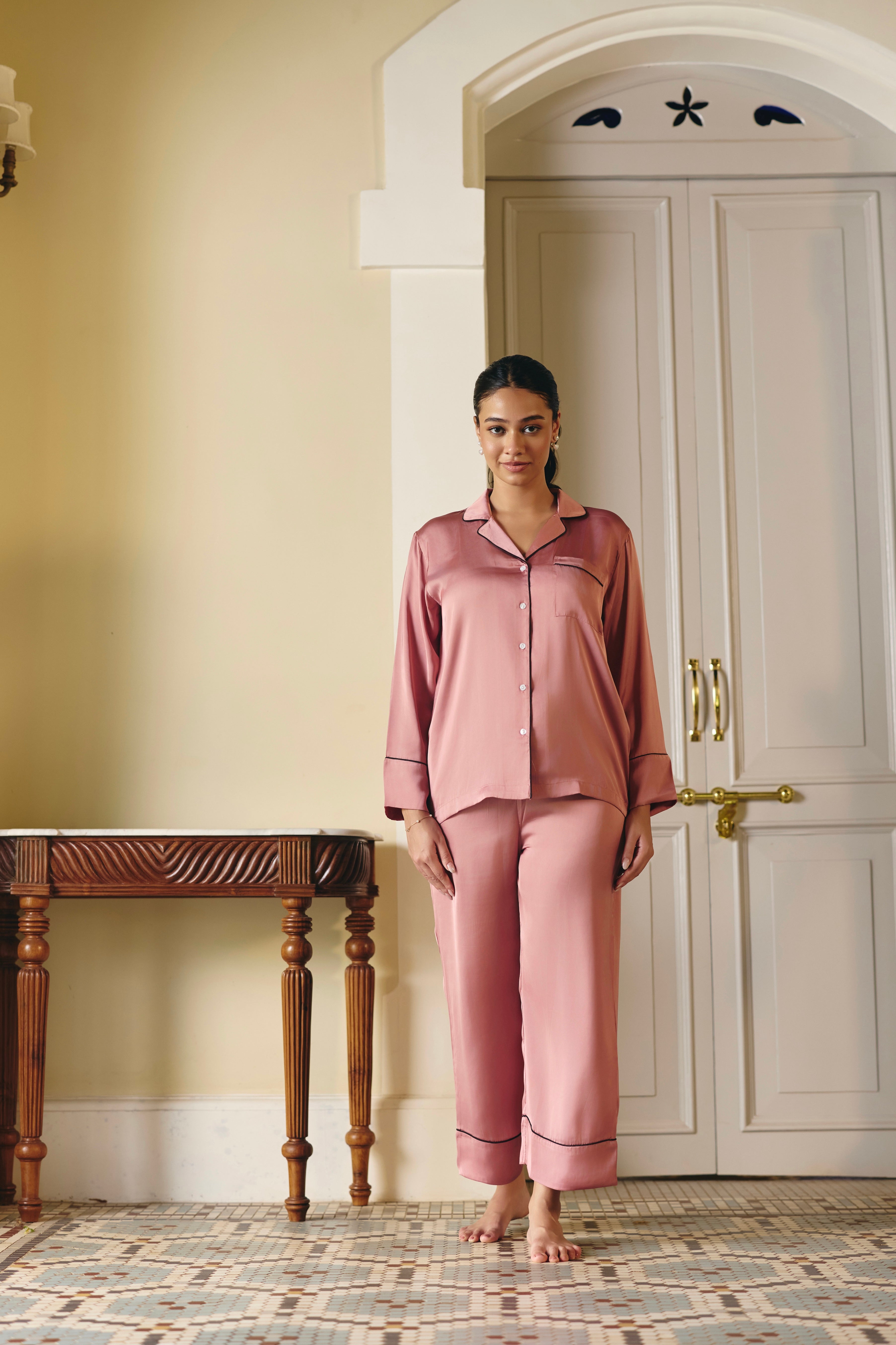 Rose Glazed Satin Pajama Set