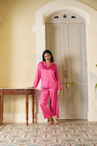 Wrap yourself in comfort and elegance with our classic satin pajama set. The relaxed-fit shirt, complete with a pocket and sophisticated piping, pairs perfectly with the drawstring pajamas, also detailed with elegant piping. This two-piece set blends luxurious feel with timeless style, making it the perfect choice for a comfortable night's sleep or a leisurely day at home.